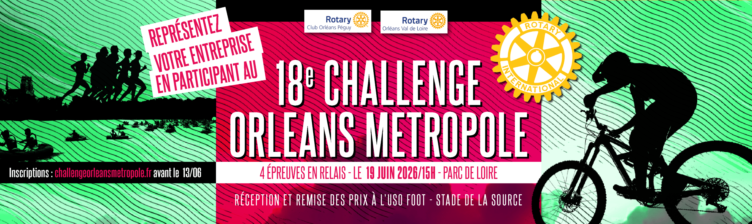 C’est une rencontre inter-entreprises qui s’est tenue à la base nautique du Parc de Loire autour de 4 épreuves sportives en relais : canoë, VTT, course à pied et le défi rotarien où les 4 membres de l’équipe arrivent en courant ensemble vers la ligne d’arrivée (avec photo), suivie traditionnellement de la remise des prix lors d’une soirée conviviale !